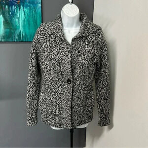 Ann Taylor Loft Women’s Small Cardigan Wool Blend Chunky Cozy Black White