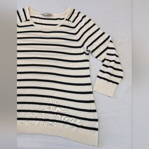 Ann Taylor Loft Women's Striped Cream/Black Pullover Lightweight Sweater, sz XLD