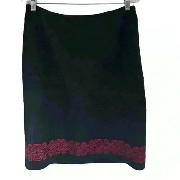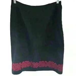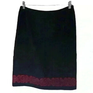 Ann Taylor Loft Women's Wool Pencil Skirt Black Red Embroidered Hem 14