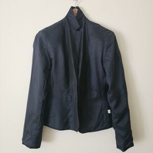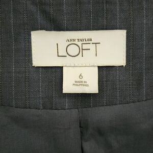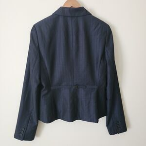 Ann Taylor Loft Womens Wool-Blend Pinstriped Blazer Jacket Black Navy Blue Sz 6