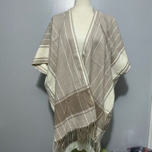 Ann Taylor Loft Womens XS/S Oversized Beige Tan Fringe Poncho Sweater