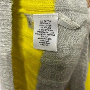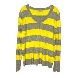 Ann Taylor Loft Wool & Rabbit Hair Blend Striped V Neck Casual Cable Sweater
