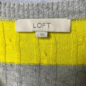 Ann Taylor Loft Wool & Rabbit Hair Blend Striped V Neck Casual Cable Sweater