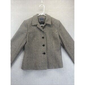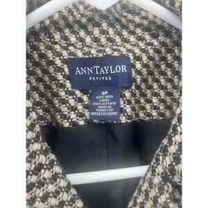 Ann Taylor Loft Wool Tweed Blazer Jacket Size 8 Petites Black Cream Business 8P