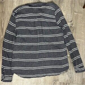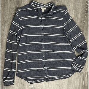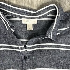 Ann Taylor Loft XL Top Button Up Shirt Gray White Stripe Lightweight Career Work
