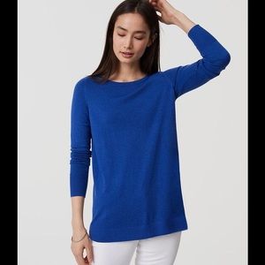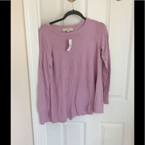 Ann Taylor Loft back pleat sweater. NWT. Color: lilac kiss. In a luxe cashmere effect knit, this soft knit gets smart with a sleek and swingy back pleat. Round neck. Long sleeves.