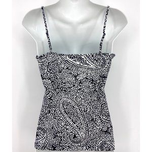 Ann Taylor Loft black and white paisley print camisole tank top with adjustable straps. Size small, like new condition. 95% cotton, 5% spandex.
