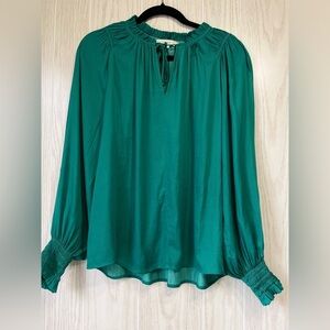 Ann Taylor Loft emerald green, Soft Satin long sleeved blouse size M EUC