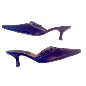 Ann Taylor Loft navy blue leather heels.Front strap.Bow trim. Size 8. 2.5” heels. Slight scuff on lower heel. Barely noticeable ( see photo). Works well with all outfits. Classic, comfortable, and trendy. Made in Brazil.