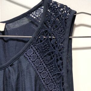 Ann Taylor Loft navy blue tank top with lace detailing around shoulder M