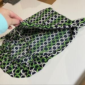 Excellent preowned Condition. No issues. Super classy off the shoulder style ruffle tank top. Full side zipper for tailored fit. Navy blue , green ,white chain print