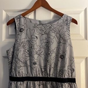 Gray with black flowers. Can be dressed up for wedding or casual for a shower. Size petite large, waistband has stretch. Excellent condition, smoke free home