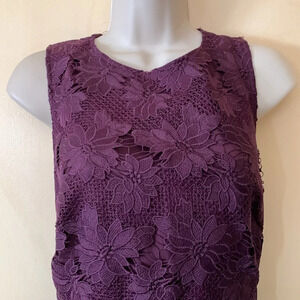 Ann Taylor Loft plum lace dress. This dress is in new condition, never been worn. The color is a deep plum and is lined in the same color. Sleeveless with a beautiful scalloped hem. Invisible back zipper. NWOT