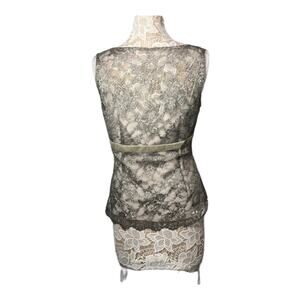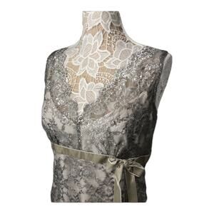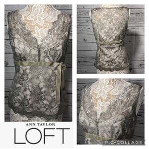 Ann Taylor Loft silver lace V neck scalloped top sleevless, cami attached size 8