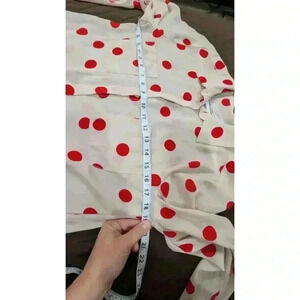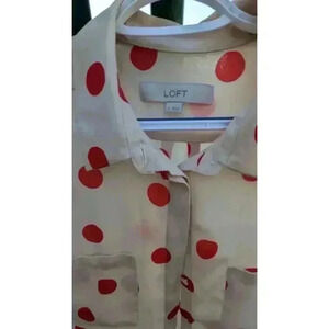 Ann Taylor Loft women's semi sheer beige and red polka dot blouse size M