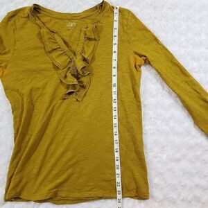 Ann Taylor Loft medium Olive green ruffle neck long sleeve button blouse