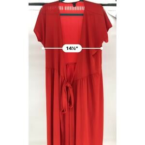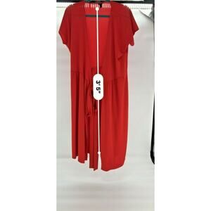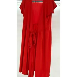 Ann Taylor Solid Red Short Sleeve Long Length Cardigan Women’s