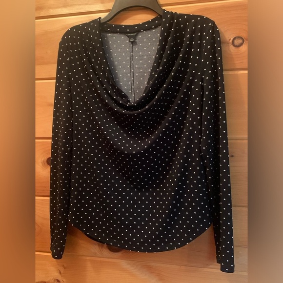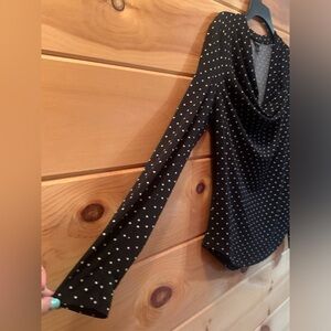 Ann Taylor Long Sleeve Black And White Polka dot Scoop Neck Blouse Size Small