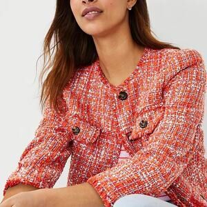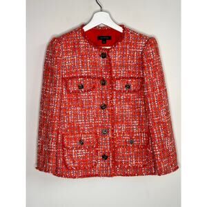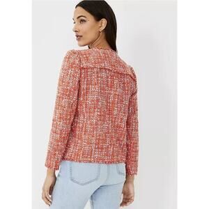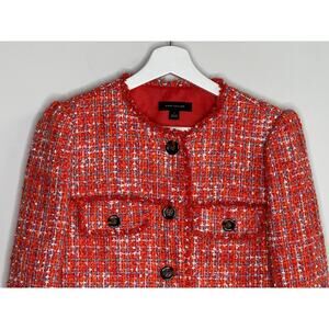Ann Taylor Long Sleeve Button Front Fringe Tweed Suit Jacket Orange Women's 4