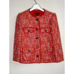 Ann Taylor Long Sleeve Button Front Fringe Tweed Suit Jacket Orange Women's 4