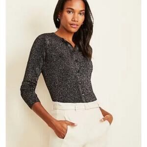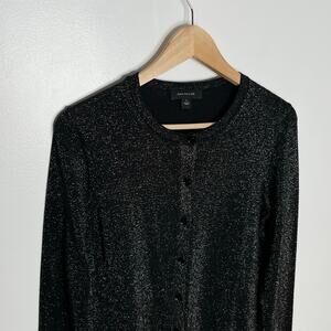 Ann Taylor Long Sleeve Button Up Cardigan Sweater Medium Black Metallic Sparkle