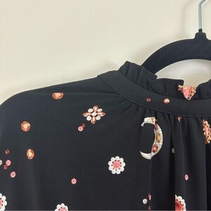 Ann Taylor | Long Sleeve Celestial Moon Patterned Peplum Waist Blouse Small