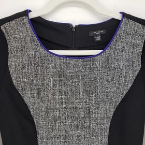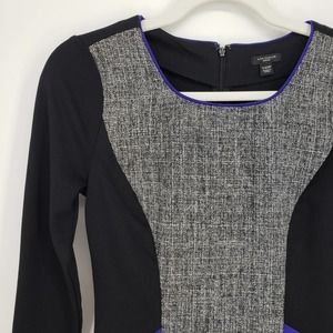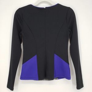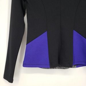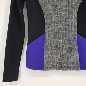 Ann Taylor Long Sleeve Top XXSP Color Block Fitted Ponte Knit Work Black Blue