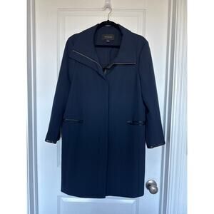 Ann Taylor Long Zip Jacket with Faux Leather Trim, L