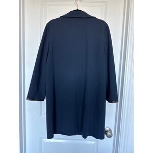 Nice car coat length jacket with wide collar and zip front, faux leather placket and trim on cuffs and pockets.
