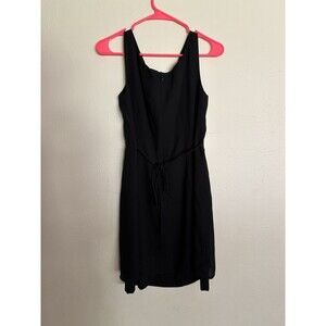 This Ann Taylor sheath dress in size 8 is perfect for any occasion, whether it's a party, cocktail event, or even for formal business meetings. The dress features a round neckline, wide straps, and a zip closure. The black color is accented with buttons and the dress is made of polyester material that is both lined and slimming.