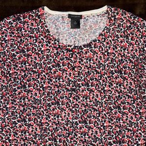 Ann Taylor M Black & Red Floral Print on White Short Sleeve Cardigan