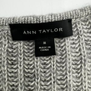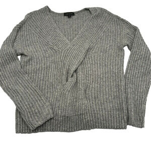 Ann Taylor MEDIUM twist criss cross fuzzy v neck gray knit sweater pullover top