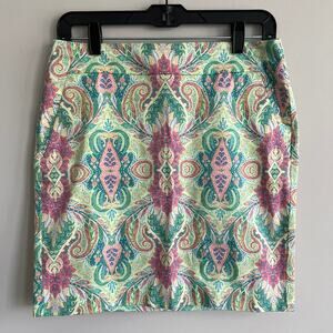 Ann Taylor Madison Skirt Straight Paisley Pink Green Cotton 2 NWT