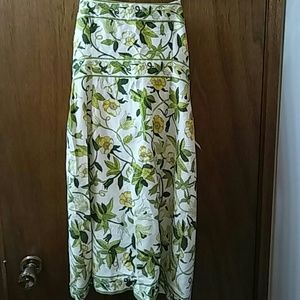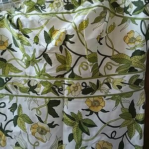 Beautiful greens and yellows in a white background. Removable thin straps. 8 petite.