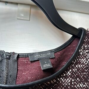Ann Taylor Marled Tweed Burgundy Black White Sheath Shift Dress Chic size small