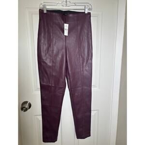 Ann Taylor Maroon Wine Faux Leather High Rise Pants Side Zipper Size Small NWT