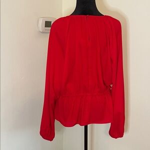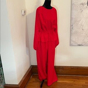 Elegant red blouse and wide leg pants by Ann Taylor. Just in time for the Holidays