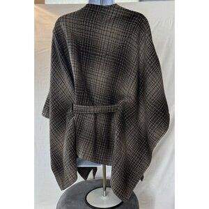 Ann Taylor Med. Wool Plaid Cape Brown Sweater Preppy Classic Boho Feminine Y2K