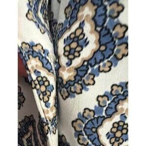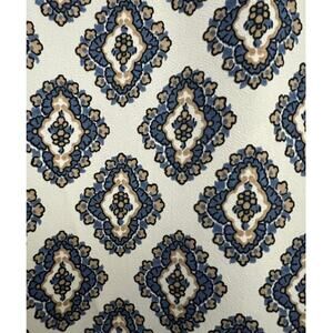 Beautiful Ann Taylor blouse featuring a medallion print in blue, tan, and black on a white background. It's classic style makes it perfect for both professional settings and casual everyday wear.