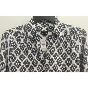 Ann Taylor Medallion Print Long Sleeve Blouse Split V-Neckline Size M NWT