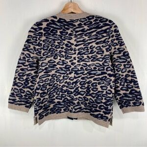 Ann Taylor Merino Wool Alpaca Leopard Print Blend Button Down Sweater Cardigan