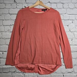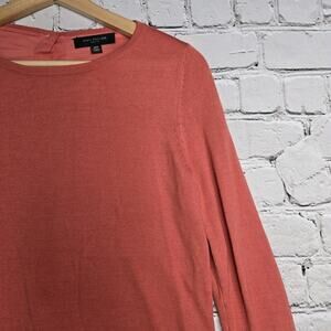 Ann Taylor Merino Wool Blend Coral Orange Button Sheer Back Knit Top Size MP