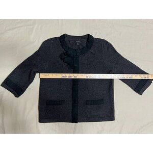 Ann Taylor Merino Wool Women's Medium Cardigan Sweater Ruffled Trim Bow Luxury