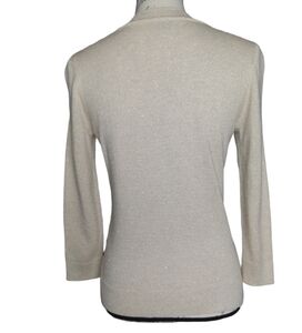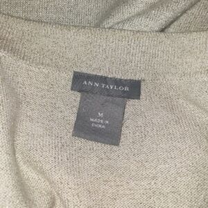 Elevate your wardrobe with this stunning Ann Taylor Cream color with Gold Shimmer Cardigan, perfect for adding a touch of elegance to any outfit. Crafted with a luxurious blend of materials this cardigan features a chic satin trim that adds a sophisticated flair.