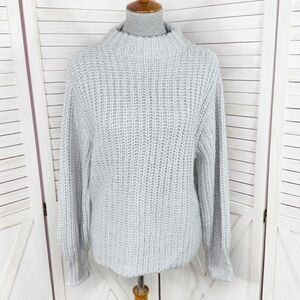 Ann Taylor Metallic Shimmer Mock Neck Chunky Sweater Grey Medium