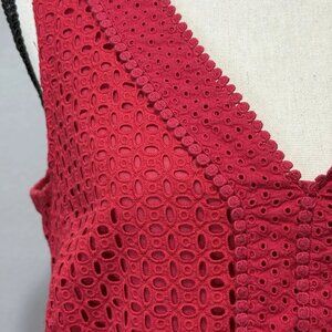Red with intricate crochet/eyelet lace panels