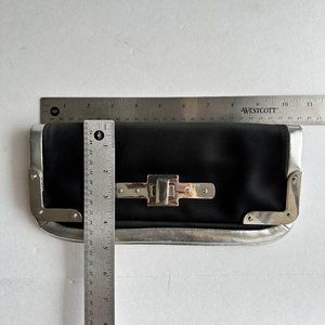 Ann Taylor Mini Satin Black Silver Purse Clutch Modern Design Evening Bag