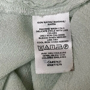 This Ann Taylor blouse is a stylish and versatile addition to any wardrobe. The mint green color is perfect for a fresh and bright look, while the button-up design adds a classic touch. The blouse is made of a lightweight and breathable blend of polyester, rayon, and cotton, making it comfortable to wear for all seasons.