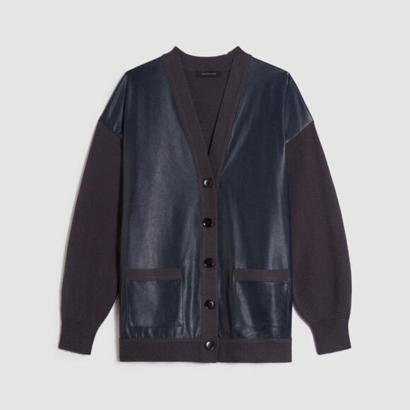 Ann Taylor Mixed Media Faux Leather Button Cardigan Sweater (NWT)