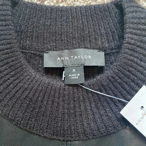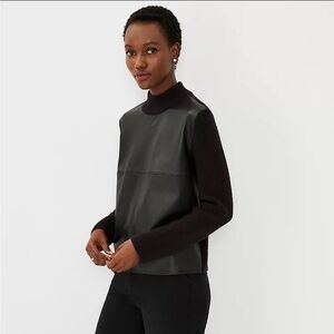 Ann Taylor Mixed Media Mock Neck Sweater with faux leather